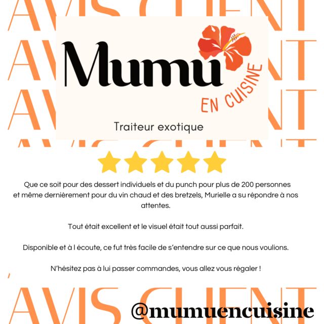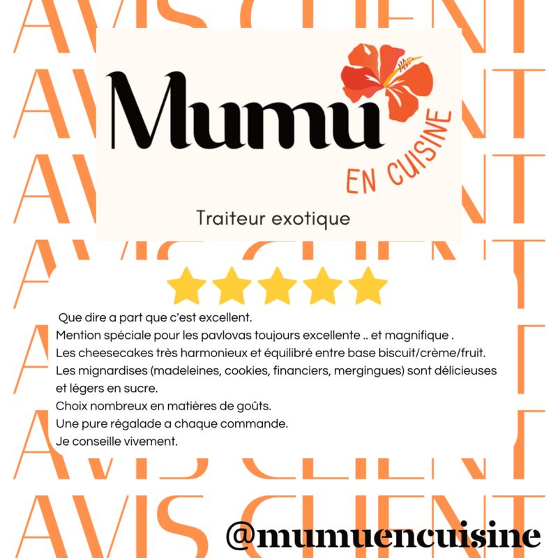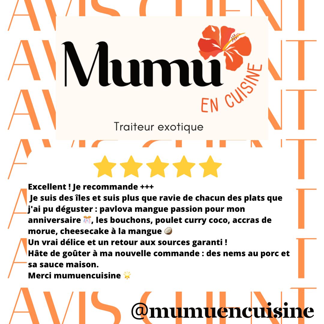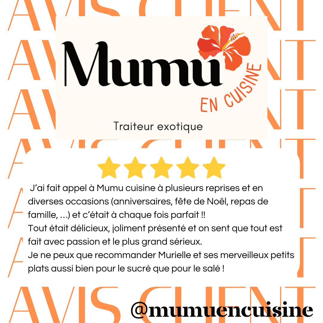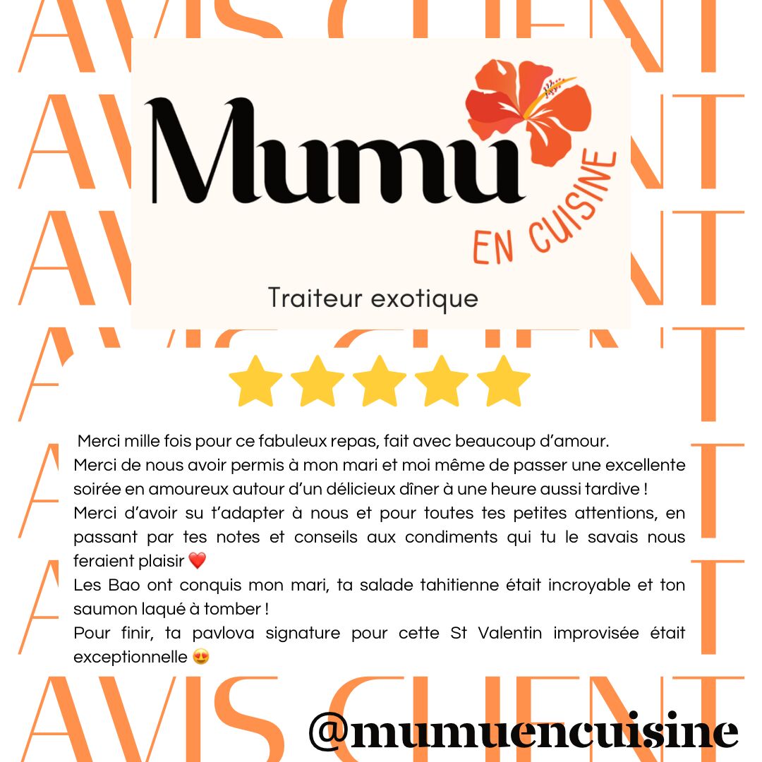 Suite à une reconversion professionnelle, j'ai créé mon entreprise "Mumu en cuisine" en 2022 afin de vivre de ma passion.